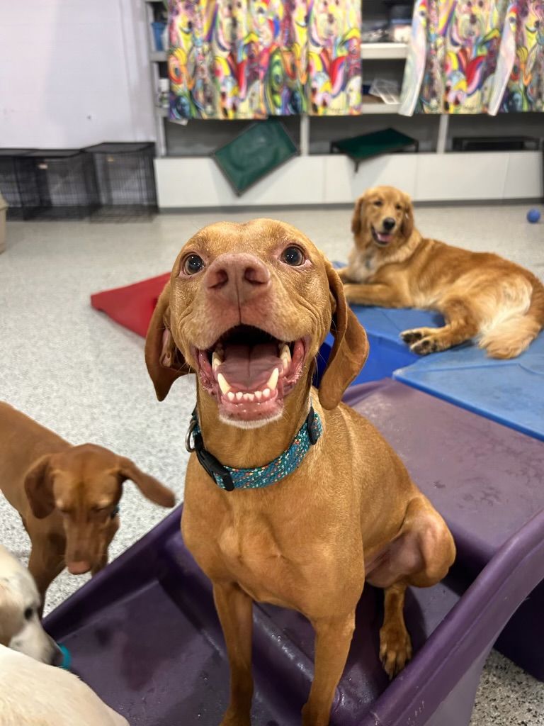 Winnie has been coming to Bark Ave forever! You can hear her bark out of a crowd of barking dogs, its so unique! Her along with her brother Mac ran the daycare rooms. Mac sadly passed away earlier this year. We still see Winnie weekly and make sure to giver her a little extra love.